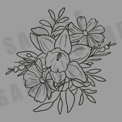Simple, one color line illustration of selected florals. Additional supporting florals and foliage to be added.